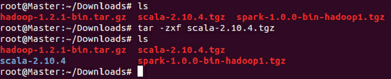 Master、Slave1、Slave2这三台机器上均需要安装Spark。首先在Master上安装Spark,具体步骤如下: