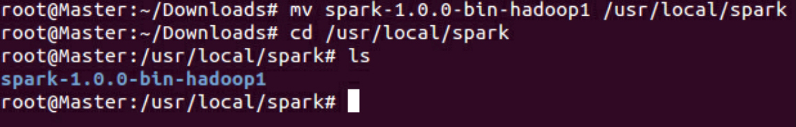 把解压后的“spark-1.0.0-bin-hadoop1”复制到/usr/local/spark”下: