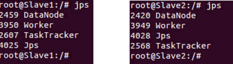 在Slave1 和Slave2上使用jps会看到如下进程信息: