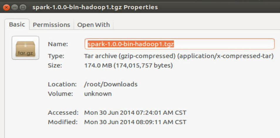 笔者是把下载好的Spark 1.0.0保存在了Master节点如图2-48所示的位置。