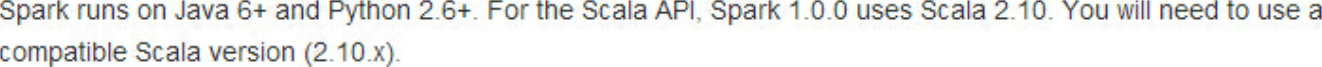 在前面构建好的Hadoop集群的基础上构建Spark集群,这里采用2014年5月30日发布的Spark 1.0.0版本,也就是Spark的最新版本。要想基于Spark 1.0.0构建Spark集群,需要的软件如下: