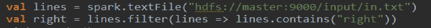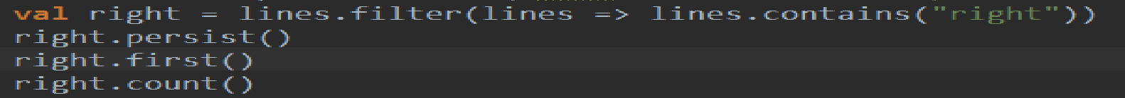 实际上,一般会经常使用持久化去加载数据集到内存中,以便可以重复地查询和使用。比如,如果想计算多个关于“right”的结果,会像下面这样写: