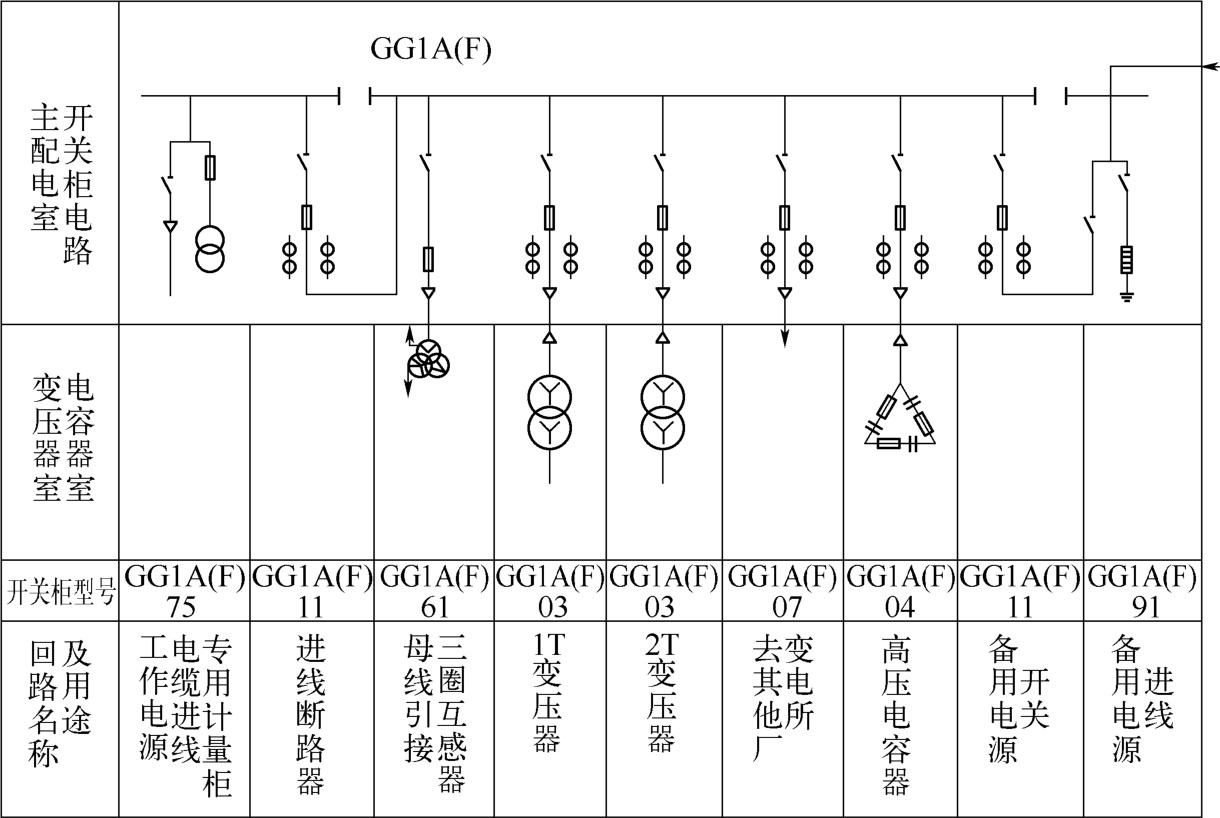 (3)电容器柜。它的作用是在高压侧进行无功集中补偿,将本系统的功率因数提高到电业部门所规定的数值,一般在0.95左右。当高压配电系统中带有高压电动机和容量较大的变压器时,多采用高压无功集中补偿方式,它的优点是可减少供电系统和输电线路的无功损耗,缺点是不能减少变压器和低电压电网中的无功功率。