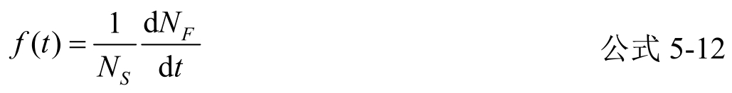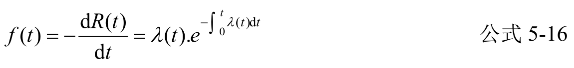 将F(t)对时间t微分一次称为故障发生的时间比率,即为故障密度函数,其值为
