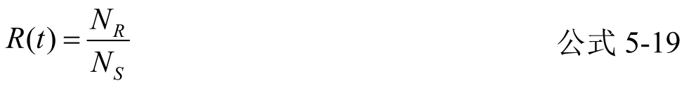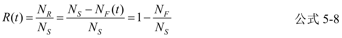 假设待试的产品总数为N S ,经试验时间t后仍然合格的产品数为N R ,出故障的产品数为N F ,则可靠性函数R(t)可表示为