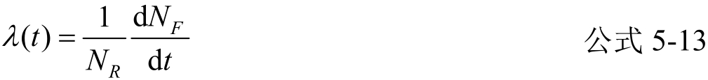 在可靠性分析中,另一个重要参数是产品的失效率或称故障率。它被定义为单位时间内失效产品数比上还在工作的产品数。