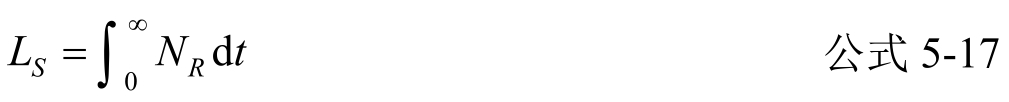 令从卫星运行开始时起到Δt时卫星的生存数为N R ,因为这些卫星具有Δt的寿命,故它们的总寿命为N R ×Δt,但N R 随时间而减小,一直到t无穷大总寿命为L S ,则有