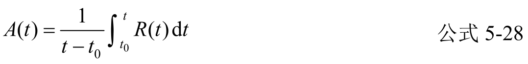 是总时间,它相当于公式5-27的MTBE+MTTR。由公式5-28还可看出,A(t)由R(t)唯一决定,且随时间单调下降。我们容易理解,A(t)与R(t)一样,都是表示产品可靠性的物理量。R(t)表示产品不出故障的程度;A(t)表示产品随时可用的程度。