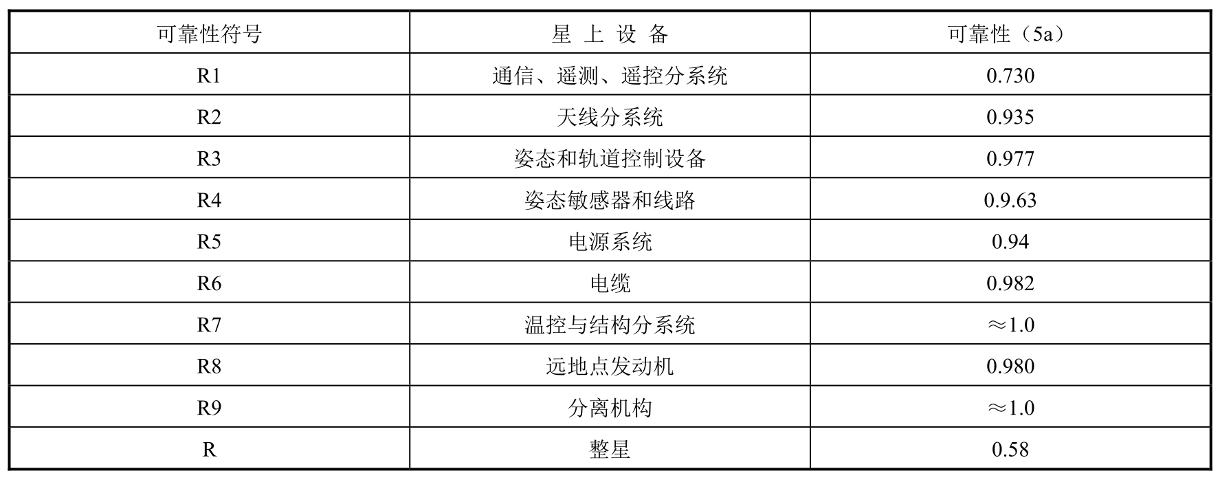 表5-8 国际通信卫星-3卫星的可靠性估算