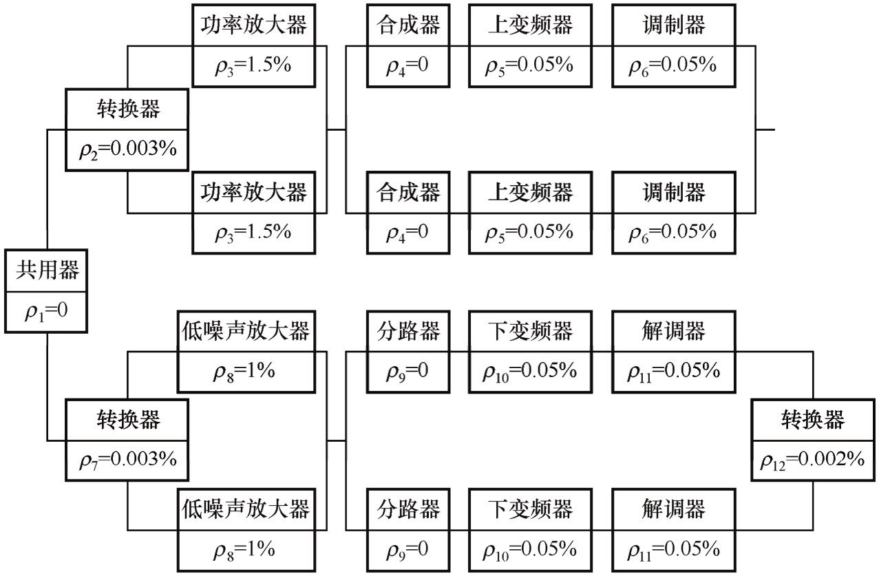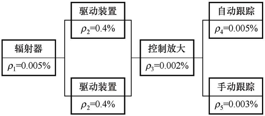 由上述串联型和并联型可用度A与维修比ρ的关系式知,当A≈1,或ρ□ 1时,可以近似认为:串联型系统的维修比为各部件维修比之和;并联型系统的维修比为各部件维修比之积。利用此特性,可以很方便地对实际系统进行可用度估算。