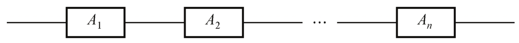 若一个系统由n个部件A 1 、A 2 、…A n 组成,当任一个A i 失效,会引起整个系统失效,则此系统为串联型可靠性系统。如图5-19所示。