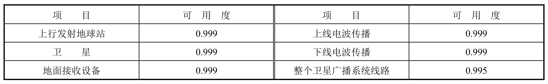 中国卫星广播系统线路可用度分配示例见表5-11所示。