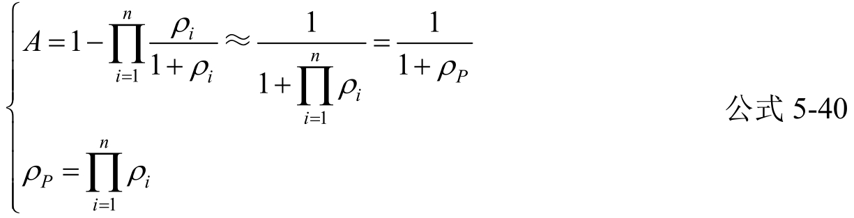当一个系统有n个部件串联时,若已知各部件可用度分别为A 1 、A 2 、…A n ,则系统的可用度A可表示如下: