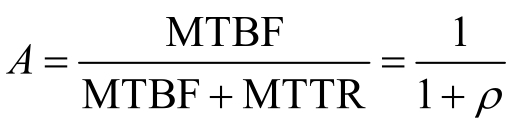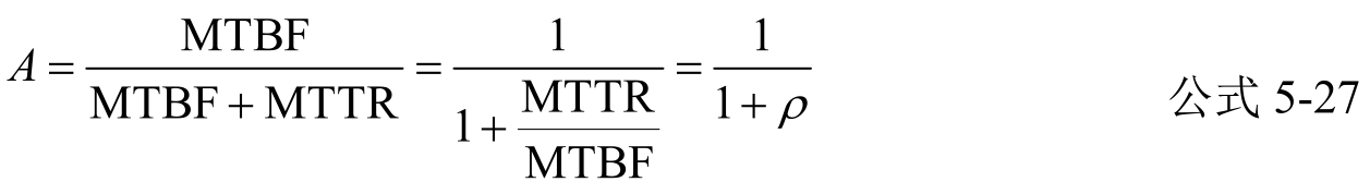 式中,MTBF为平均无故障工作时间;MTTR为平均修理时间;ρ为MTTR与MTBF之比,叫做维修比。
