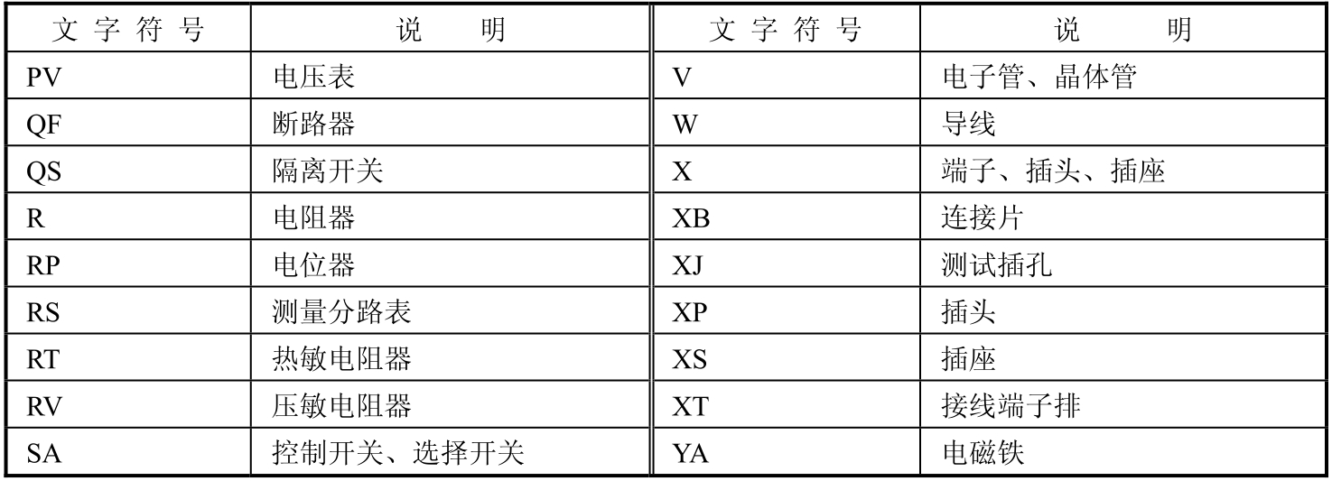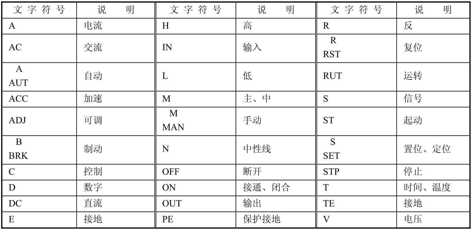 如果表3-1、表3-2中所列的基本文字符号、辅助文字符号不够使用,可采用国际标准中规定的电气技术文字符号。
