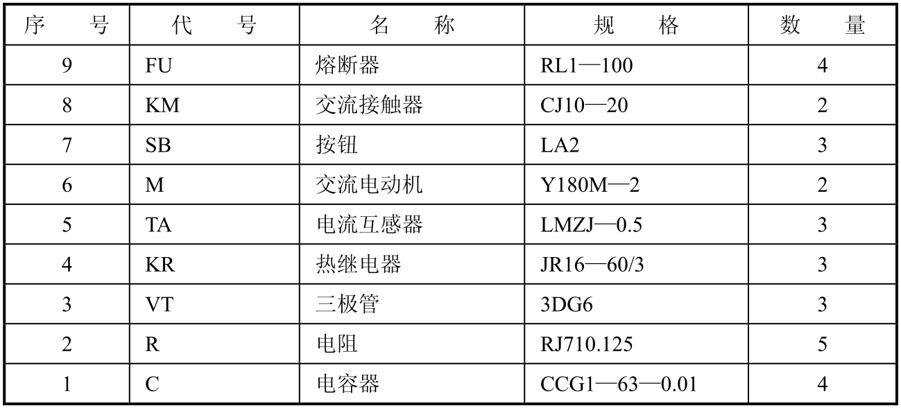 明细栏一般由序号、代号、名称、数量、材料、重量(单件、总计)、分区、备注等组成,也可按实际需要增加或减少。元器件明细栏一般以表格的形式画在标题栏的上方,明细栏中的序号自下而上编排。明细栏的尺寸与格式如图3-1所示。