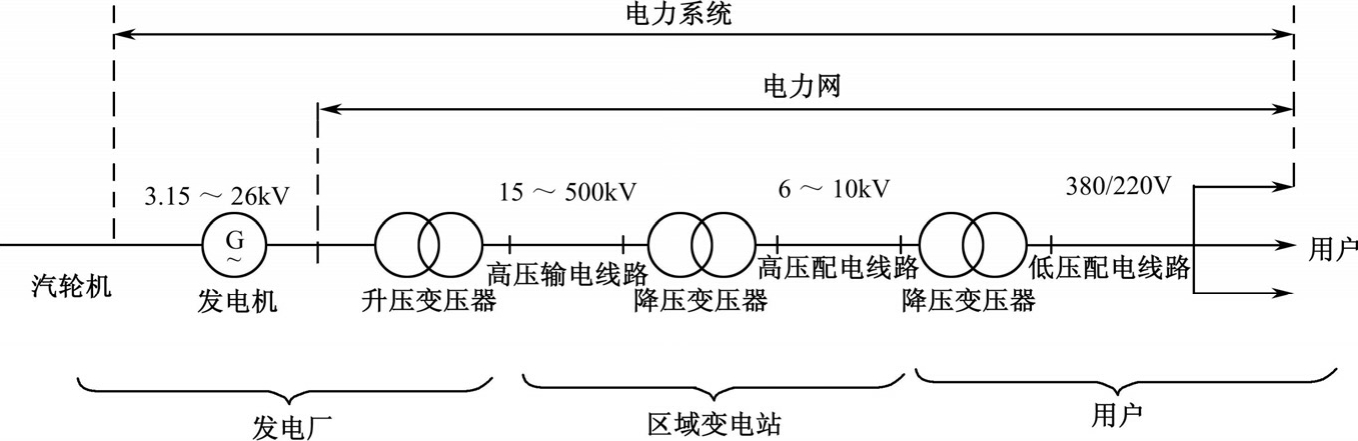 图3-3为从发电厂到用户的电力传输过程示意图。