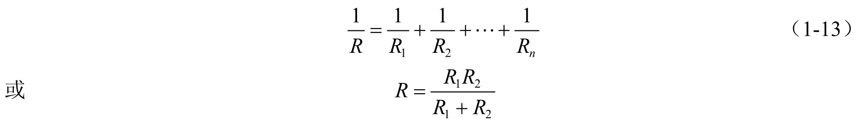 电阻R1、R2并联,其总电阻 R 的计算公式为