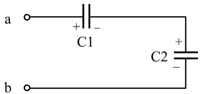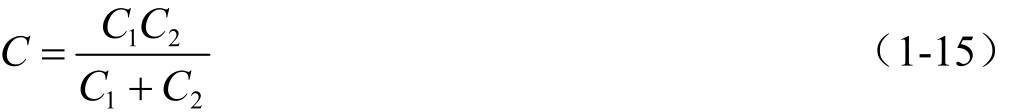 如图1-7所示,电容C1、C2串联时,其总电容 C 为