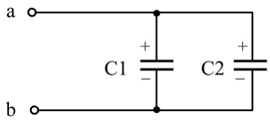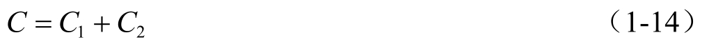 如图1-6所示,电容C1、C2并联时,其总电容 C 为
