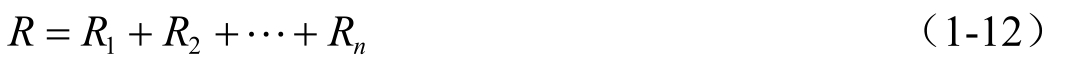 电阻R1、R2串联,其总电阻 R 的计算公式为
