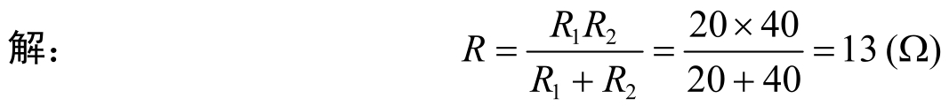 例2 如图1-5所示, R 1 =20Ω, R 2 =40Ω,求并联后的总电阻 R 。