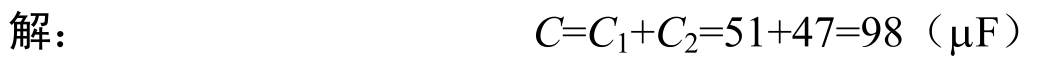 例3 如图1-6所示, C 1 =51μF, C 2 =47μF,求并联后的总电容 C 。