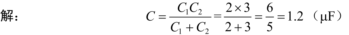 例4 如图1-7所示, C 1 =2μF, C 2 =3μF,求串联后的总电容 C 。