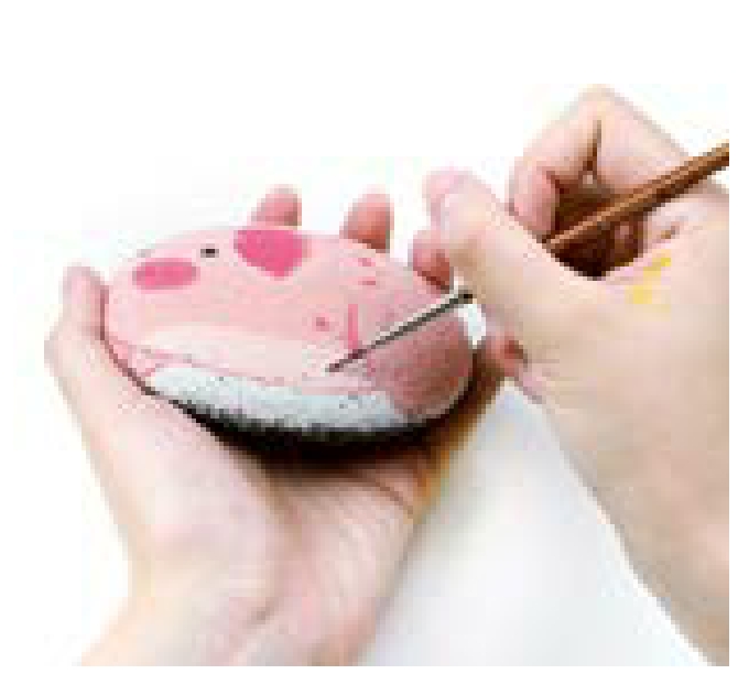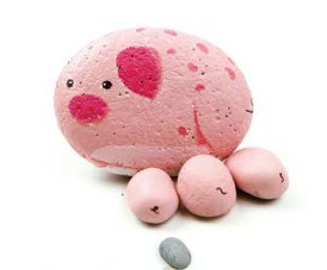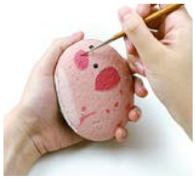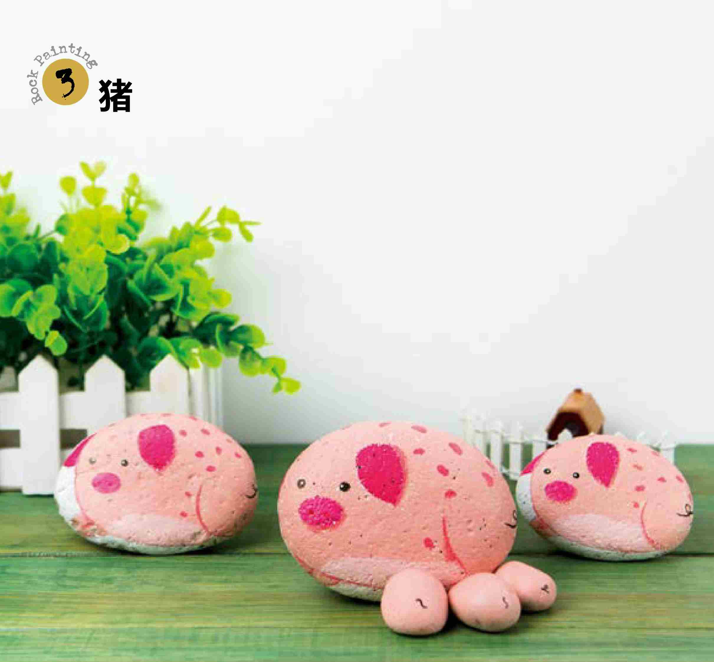 在选择要绘制母猪的石头时,一定要挑选圆润、平滑的石头,绘制小猪则可以挑选一些小巧的圆石。