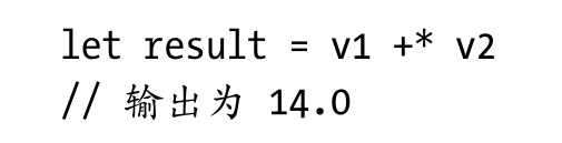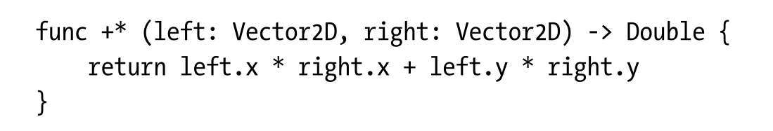 表示运算的优先级,越高越优先进行运算。Swift中乘法和除法的优先级是150,加法和减法是140,这里我们定义点积的优先级为160,就是说它应该优先于普通的乘除法进行运算。