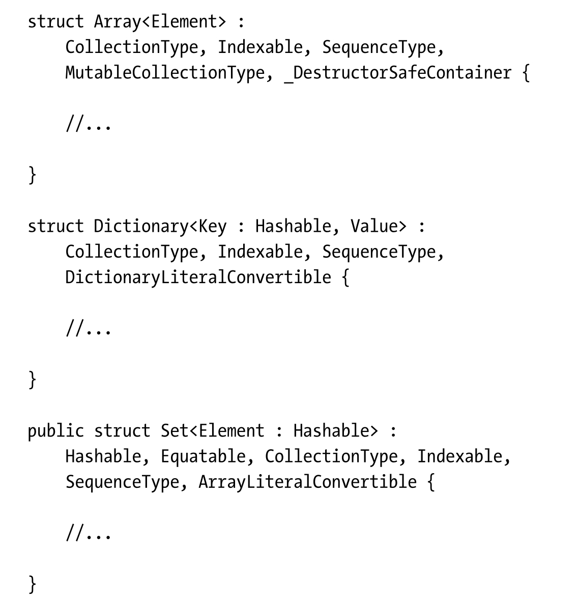 Swift中常用的原生容器类型有三种,分别是Array、Dictionay和Set: