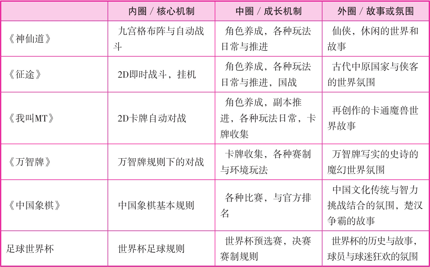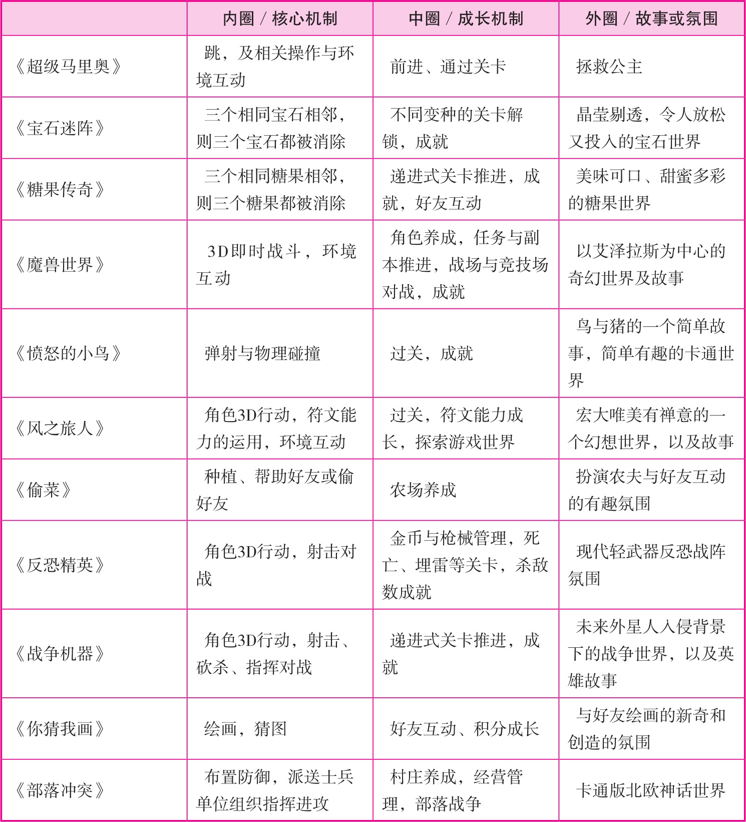 希望读者能从这些例子中找到自己所熟悉的游戏,这样理解三环结构就应该不成问题了。