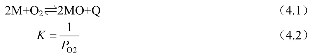 式中,M为2价金属;MO为金属氧化物;Q为氧化热;K为平衡常数(向右方向为氧化反应);P O2 为O 2 的分解压。