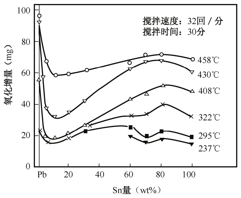 图4.2 搅拌条件下SnPb系焊料的氧化