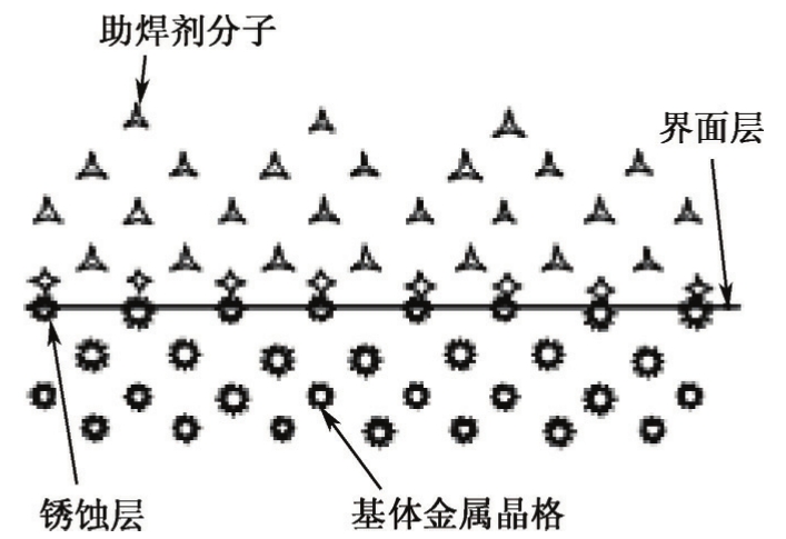熔化的钎料和基体金属互相接触的时候,如果在接合界面上不存在其他任何杂质,那么钎料中锡或铅的任何一种原子就进入基体金属的晶格而生成合金。生成合金的种类随基体金属的种类及生成合金时的温度而变化。但是能否生成合金则取决于基体金属与钎料合金原子间的引力,即原子间亲和力的有无及大小。如果亲和力非常大则生成金属间化合物;如果亲和力小则生成固溶体;亲和力特别小则生成混合物;没有亲和力就不能生成合金。这里所说的混合物是微细的两种金属的混合物,而固溶体是原子的混合物。总之,钎料和基体金属之间必须生成合金,才能达到焊接的目的。