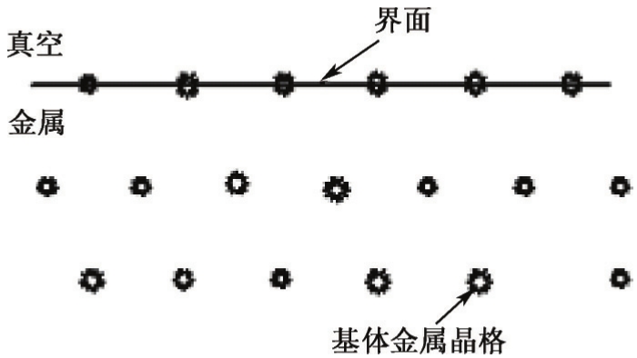 当基体金属处于绝对真空且其表面绝对净化的情况下,那么就能得到如图1.6所示的晶格排列形式。