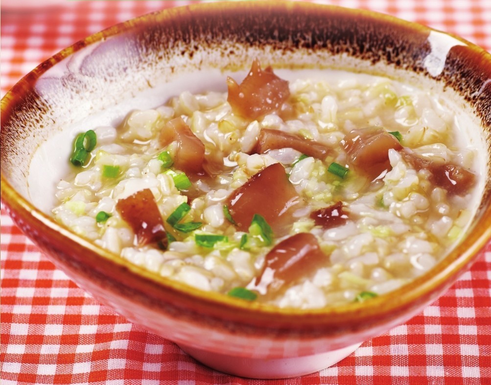 原料 海参50克,粳米100克,葱花、姜末、盐各适量。