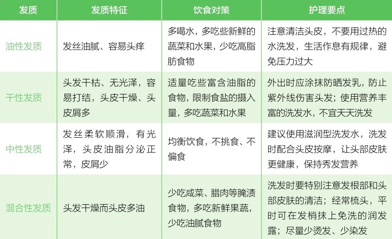 要想拥有健康的头发,仅仅靠选择好的护发产品是远远不够的,头发同样需要各种营养,因此保持均衡饮食是美发的根本之道。一旦出现饮食问题如偏食、营养不良、节食等,头发将难以呈现健康的色泽,甚至引起脱发、白发及头发干枯的烦恼。