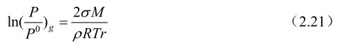 式中,P为弯曲液面的蒸汽压;p 0 为平液面的蒸汽压;R为常数;T为绝对温度;r为曲率半径。
