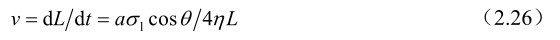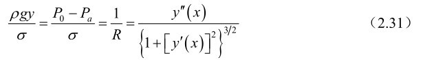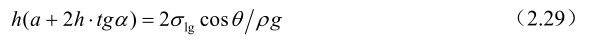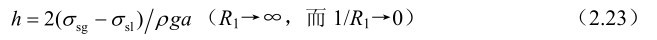 由于凹的弯液面对液体产生一个负的压力,所以由图2.29可知,当上升到任意高度时,上升力应为负的附加压力与重力之差,上升速度可由泊肃叶定律表示: