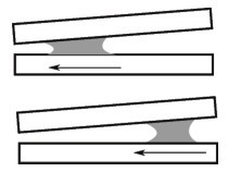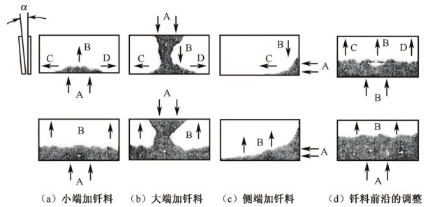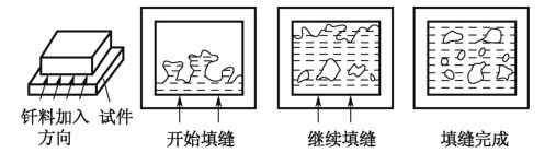 图2.34 钎料在不平行间隙内填缝的过程示意图