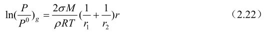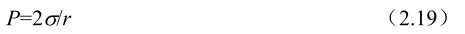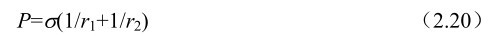 式中,P 是液体表面的附加压强;σ是液体表面张力;r 1 和r 2 是液体表面的曲率半径。