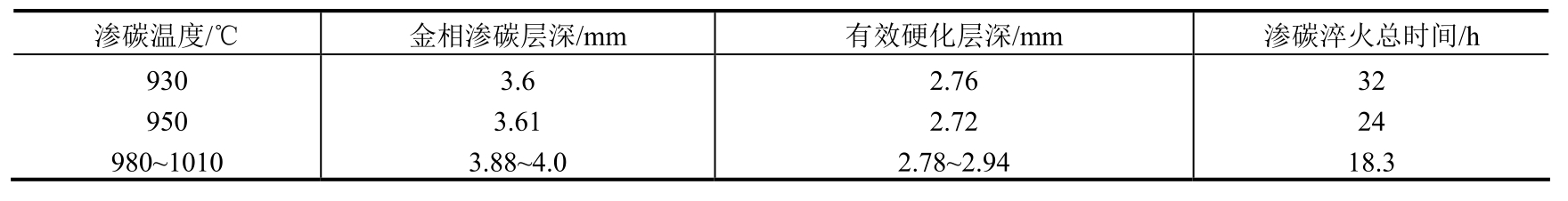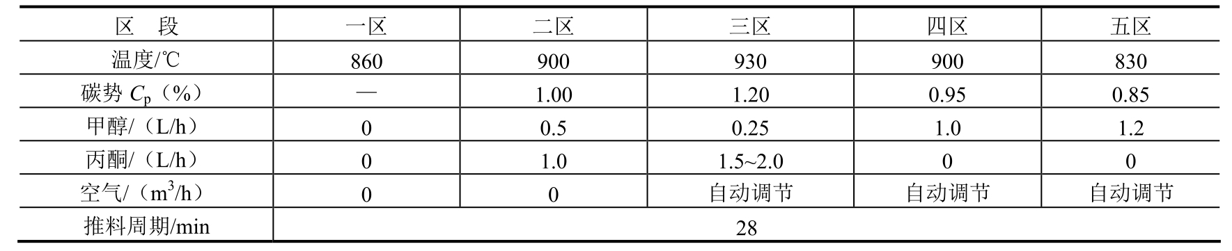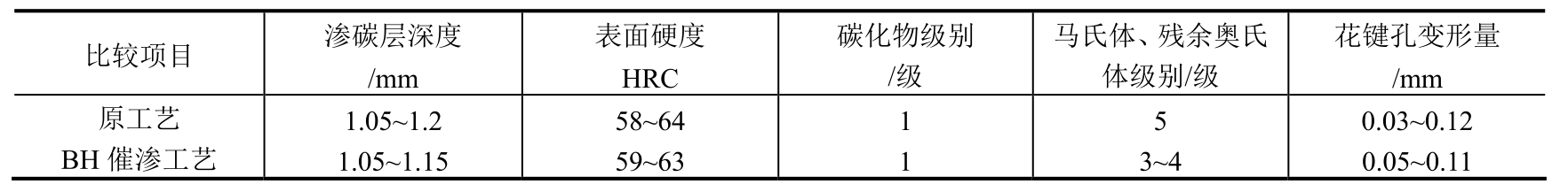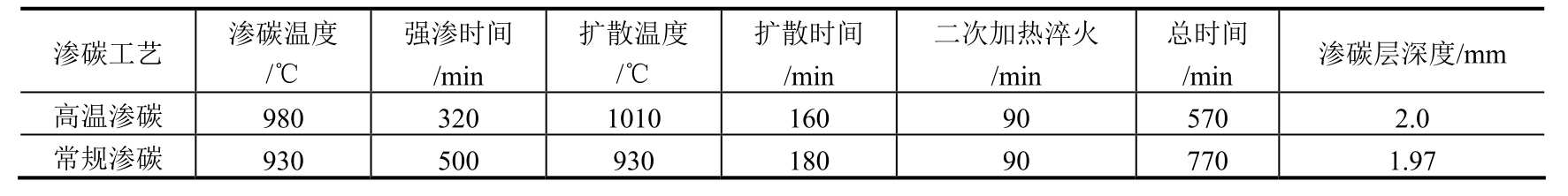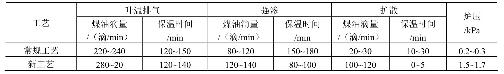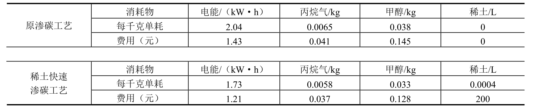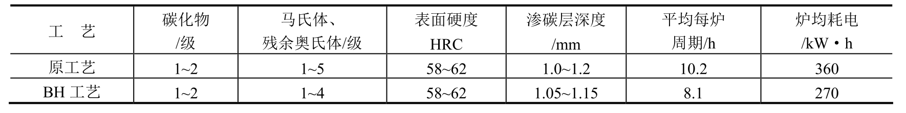采用新工艺后,每炉渗碳时间可缩短约15h,降低能耗约2025kW·h,同时也节约了丙酮和甲醇的消耗。因此,新工艺节能降耗显著。