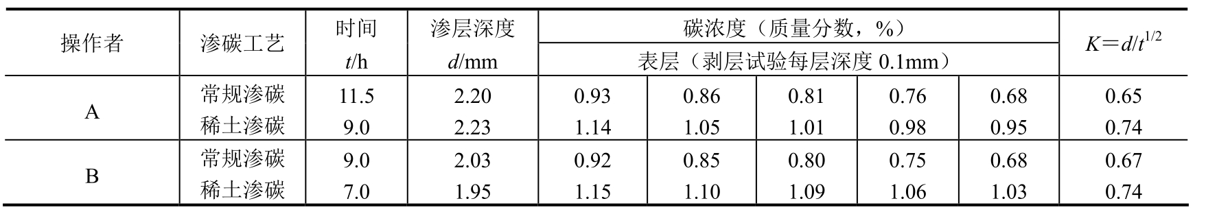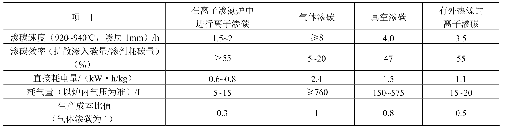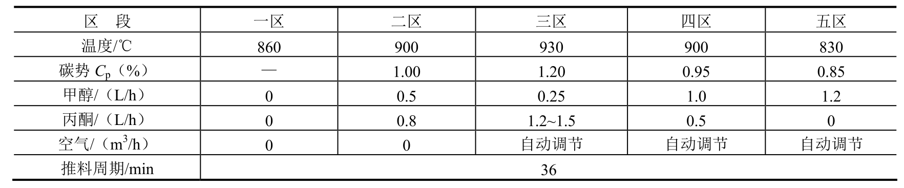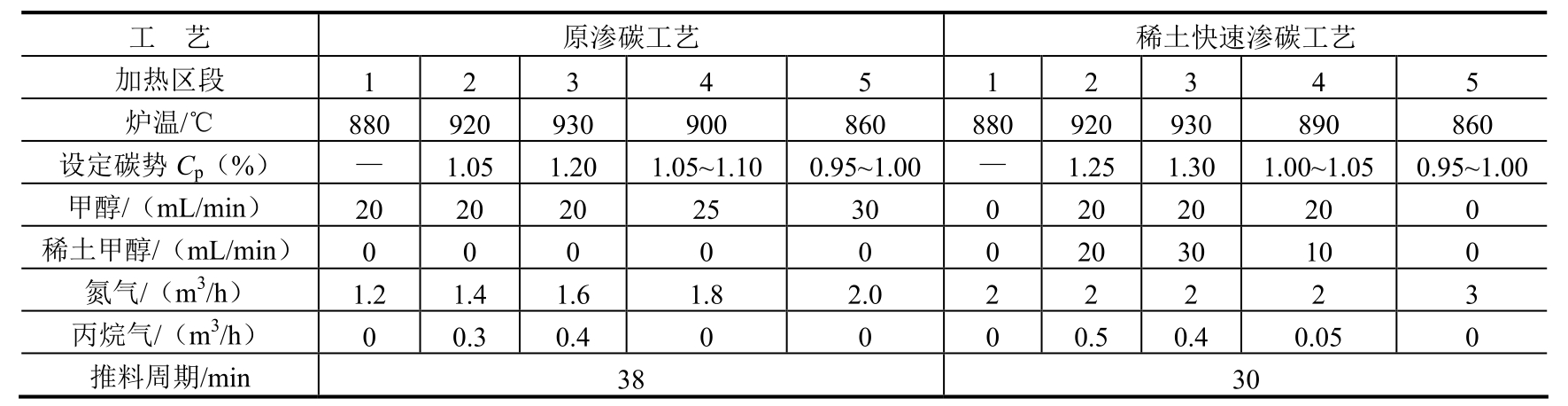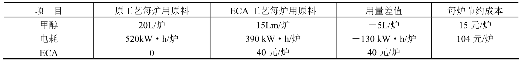 采用新工艺后,每炉渗碳时间可缩短约15h,降低能耗约2025kW·h,同时也节约了丙酮和甲醇的消耗。因此,新工艺节能降耗显著。
