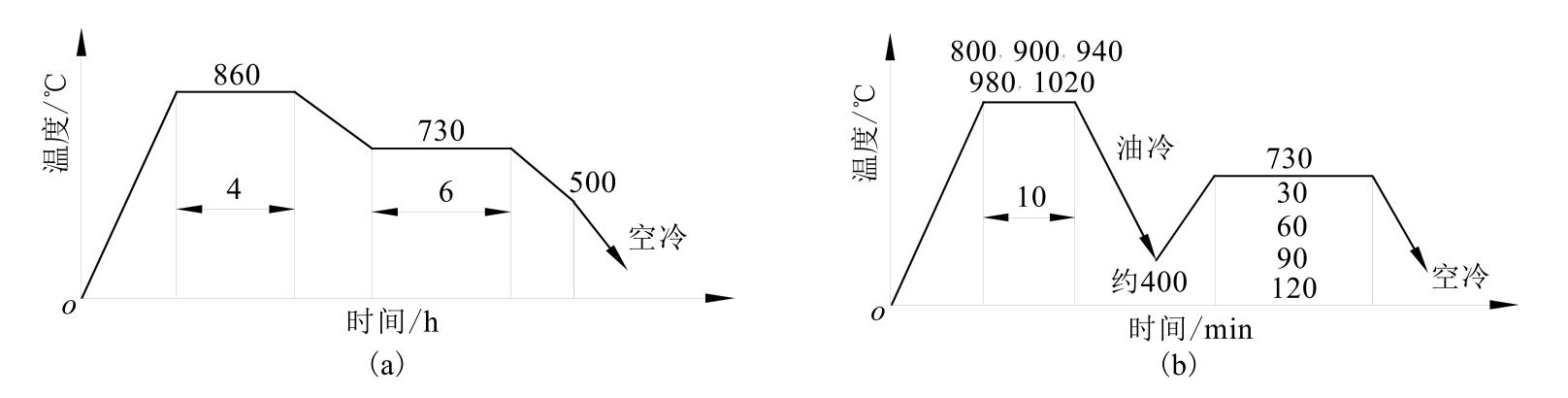 通常在计算淬火加热时间的公式τ=αD中,D为工件直径或有效厚度,α为加热系数,所计算出的时间既包括加热时间,也包括保温时间,故一般工具书所提供的数据都比较保守,如在800~900℃加热时,一般α值取1.0~1.2,即每1mm直径(或有效厚度)取1min。考虑到钢奥氏体化加热不需要均匀化,而且可实施零保温,则在700℃加热时,α值可降到0.6~0.8;840℃加热时,α≈0.5~0.65;950℃加热时,α≈0.4~0.55,就可以满足要求。由于加热时间缩短,故可降低能源消耗。