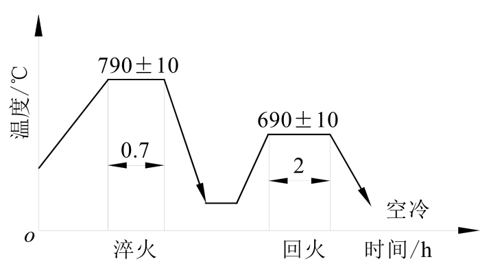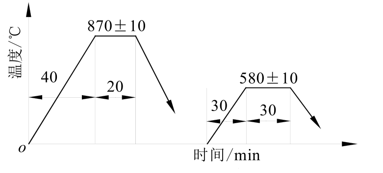 (2)原工艺及存在问题。原工艺采用盐浴炉进行淬火加热,加热温度为(900±10)℃,淬火加热保温时间为12~14min,油冷,然后进行高温回火。虽然各项指标都能达到设计要求,但热处理的大量能源消耗在加热过程,特别是盐浴炉本身耗能较大。