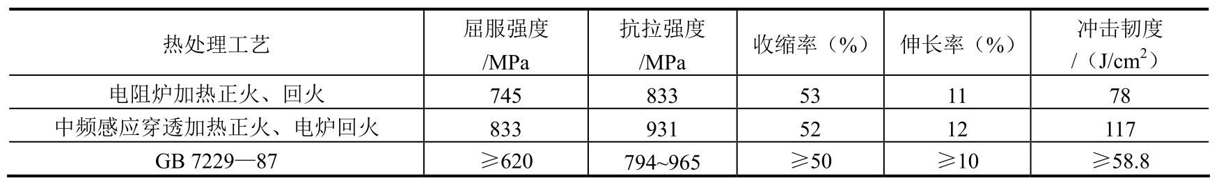 (1)调质工艺。调质加热设备采用75kW箱式电阻炉;淬火温度为820℃;淬火冷却介质为水;回火温度为570℃;回火后出炉,在空气中冷却。