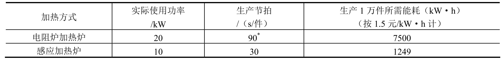 ②新工艺用电量为淬火加热33kW·h+回火加热225kW·h=555kW·h。
