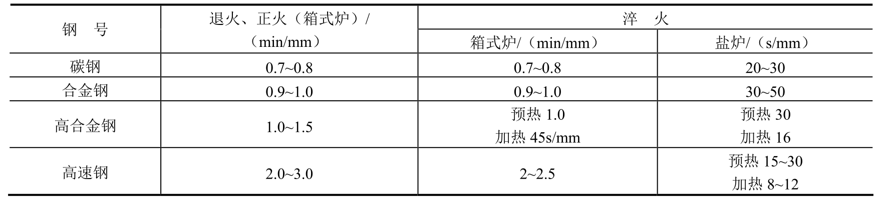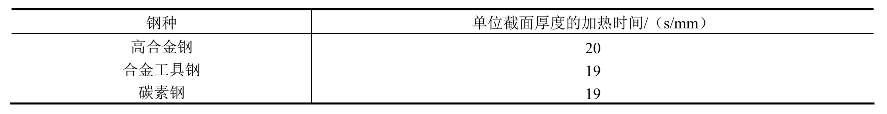 对于普通合金结构钢工件或变形要求不太严格的工件,第一次预热的时间可以取下限值,而在最终加热时取上限值。