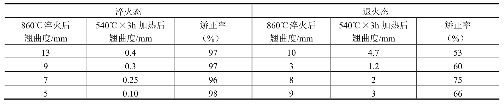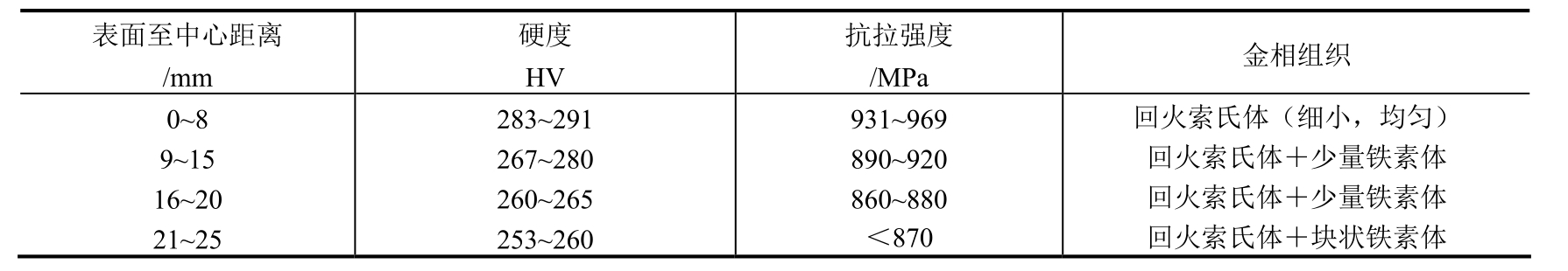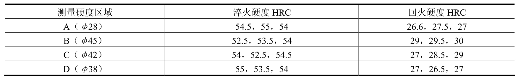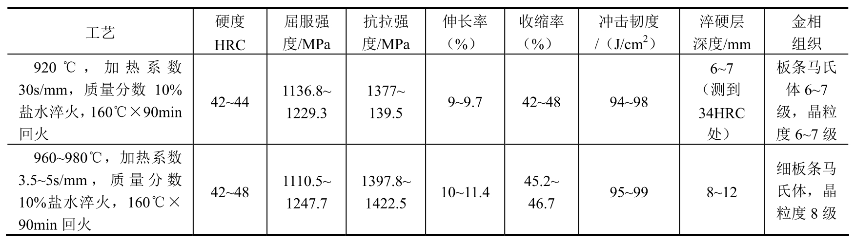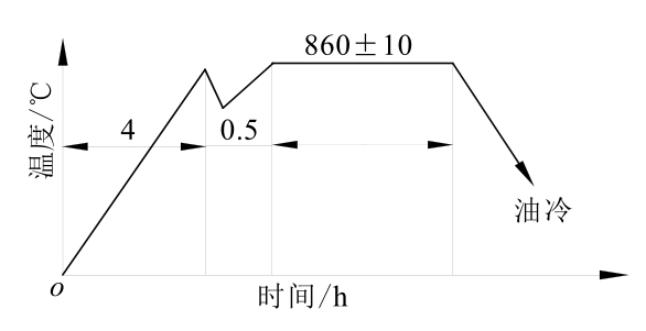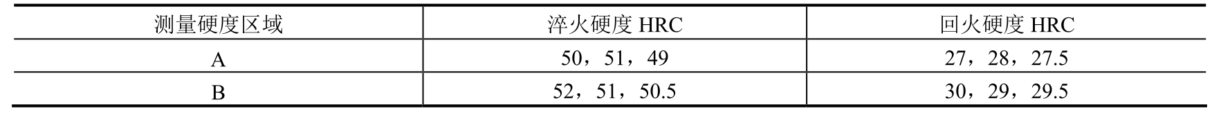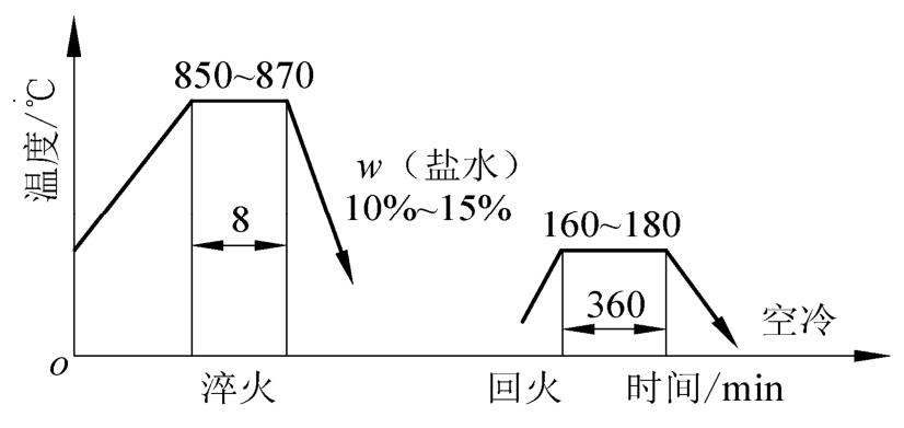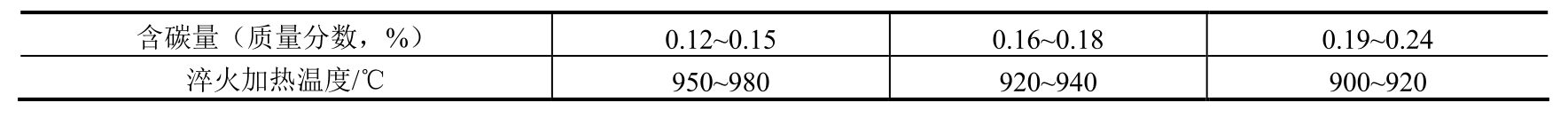 注:出炉后淬入质量分数为5%~10%的NaCl水溶液,液温≤40℃,工件淬完不超过5min。